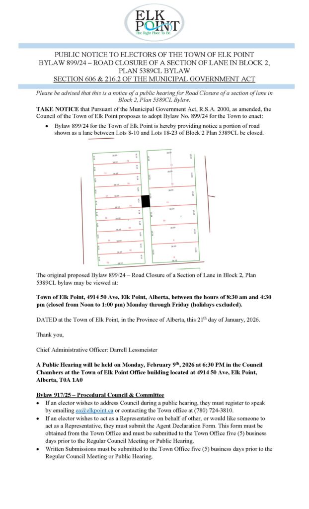 Public Hearing Notice – Bylaw 899/24 Road Closure