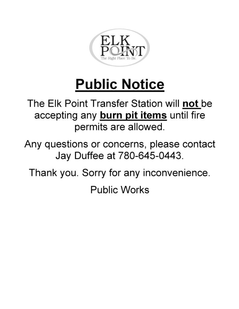 PUBLIC NOTICE – Burn Pit at the Transfer Station
