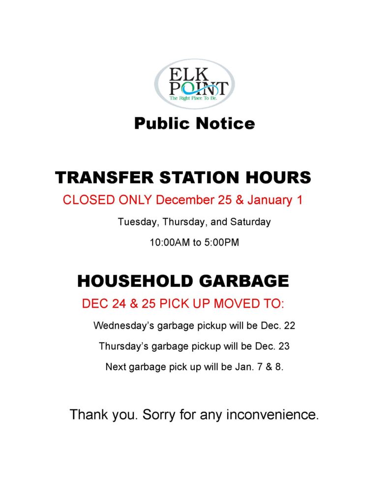 Public Notice – Transfer Station Hours & Household Garbage