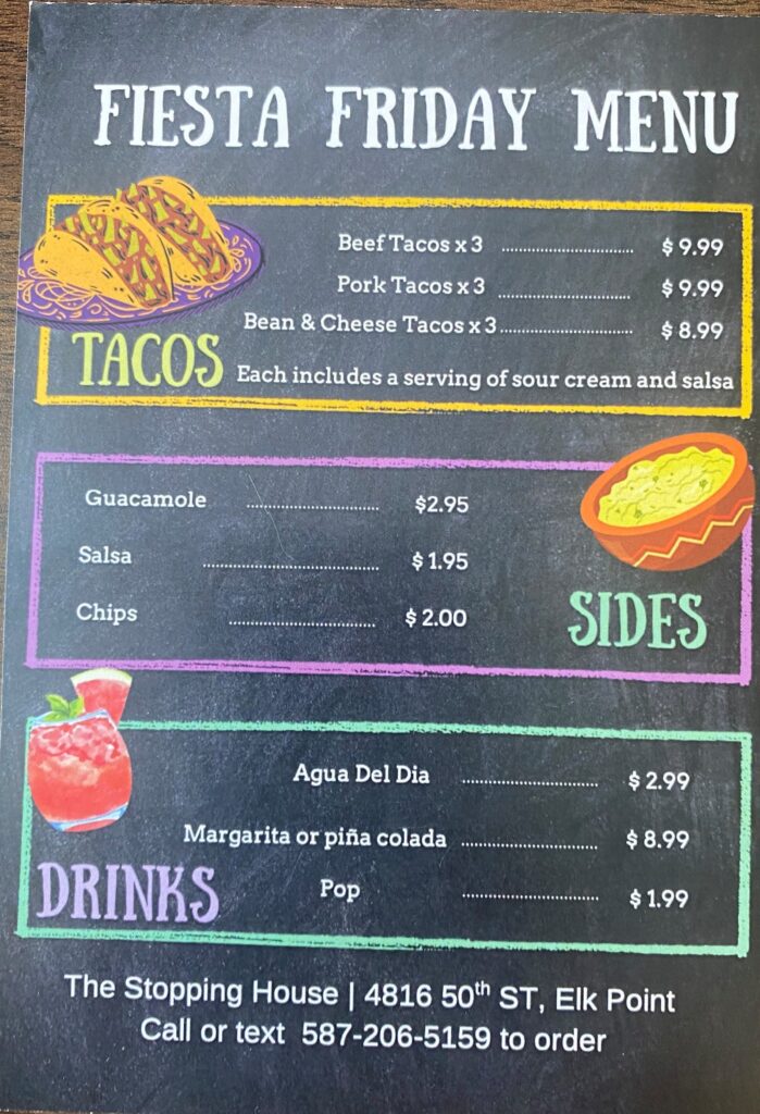 The Stopping House – Menu
