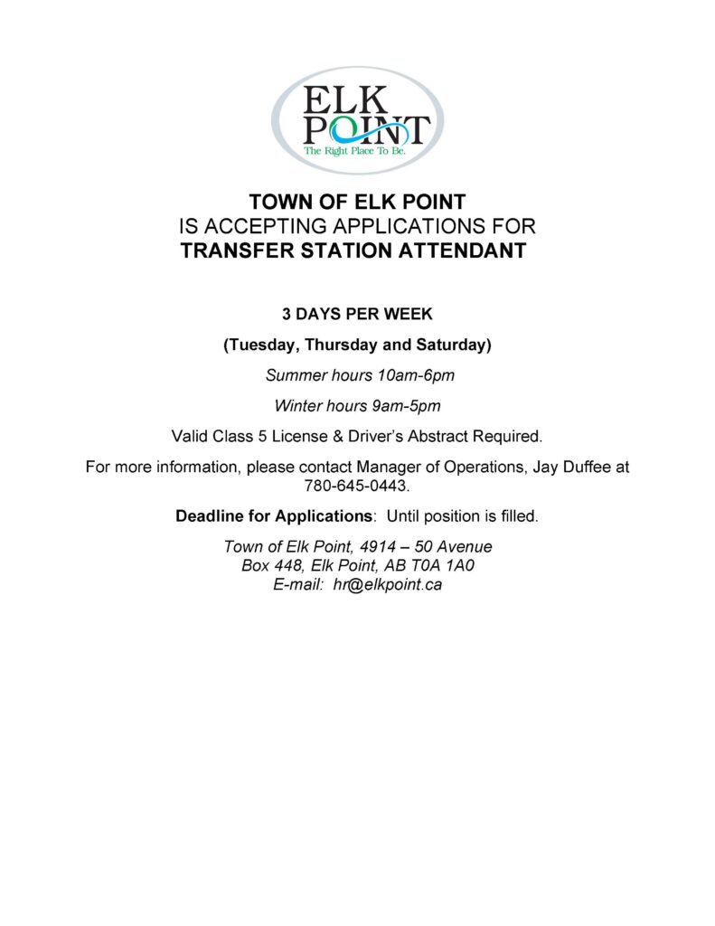 Town of Elk Point – Transfer Station Attendant – Job Opportunity